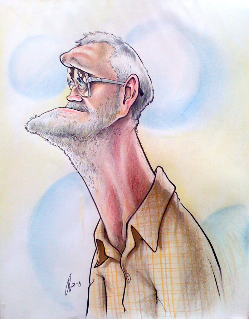 LOL, ok, so as important as it is to NOT tell the caricature artist what not to draw big (for all that does in bring attention to your embarrising feature), it is also important Not to tell the caricature artist what you want bigger... in essence, be careful what you wish for. Although now looking at the actual photo I wish I could have seen that vein bursting out of his forhead...Yikes!
